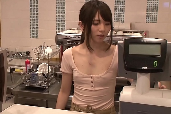 無料動画 <貧乳>ちっぱい店員がノーブラで乳首ポチしながら接客wエロすぎる勃起乳首にムラムラして無理やりハメちゃう